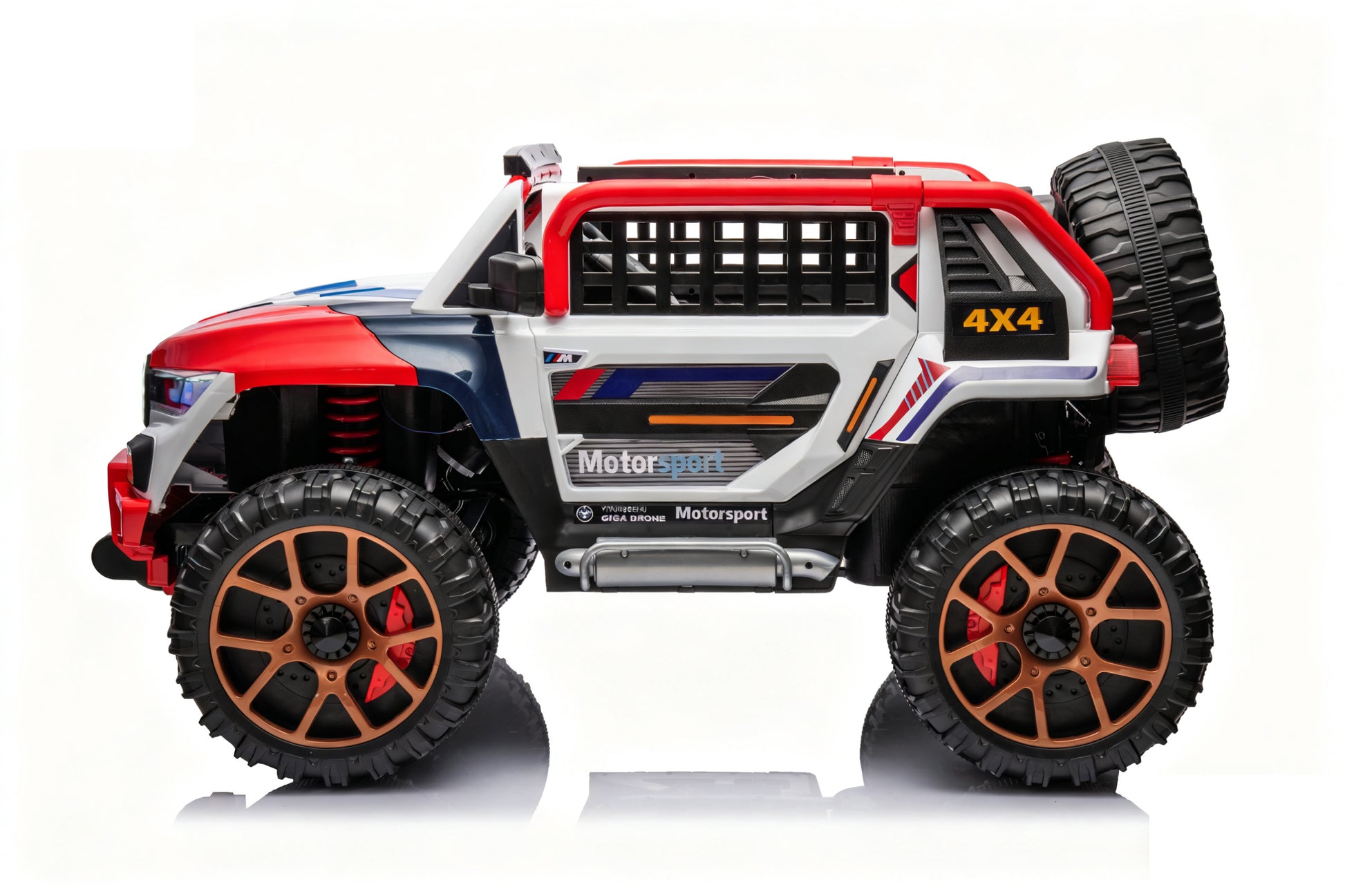 Central control music version. Early education. music,Story. USB. Double doors. Bluetooth. four Wheel shock absorber. With remote control. LED headlights,double seat. pull rod.searchlight. Child's afety lock,EVA wheel with light,leather seat